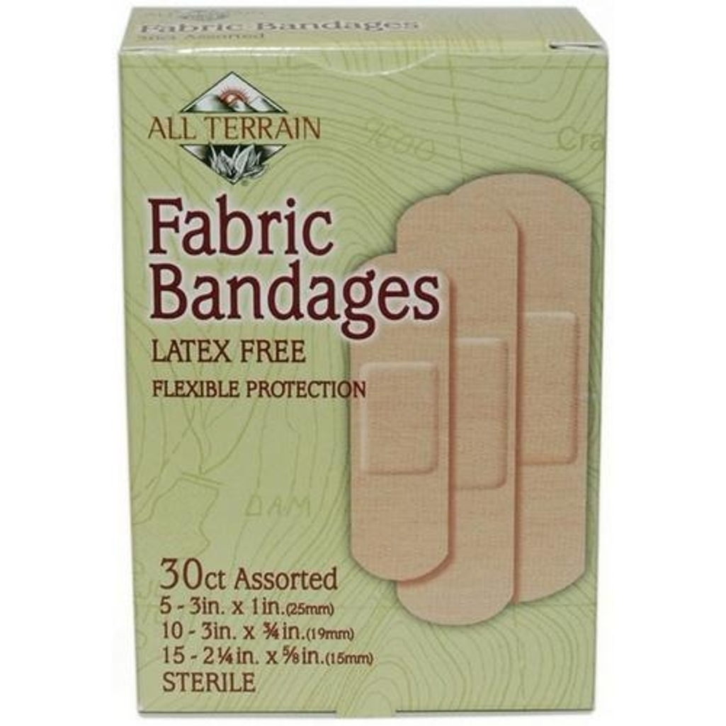 All Terrain Fabric Bandages in assorted sizes for all of your first aid needs. Latex free, biodegradable and 100% sterile. Great for sensitive skin.