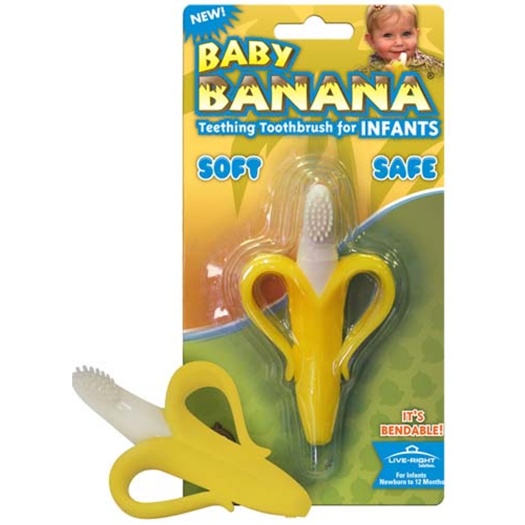 The flexible infant baby banana brush is the ideal infant training toothbrush that was invented by a mom-hygienist. The fun banana shape and soft texture are the perfect introduction and make brushing a fun experience as early as 3-4 months. It is made of the highest quality silicone and is compliant with the highest government standards. Because of its unique flexibility, it is much safer than traditional infant training toothbrushes and decreases risk of mouth injury. The wide banana peel handles provide an easy to grasp surface as infants learn to manipulate the brush in their mouth. The soft silicone can help sooth sore gums and it is dishwasher safe and freezer friendly. Parental supervision recommended.