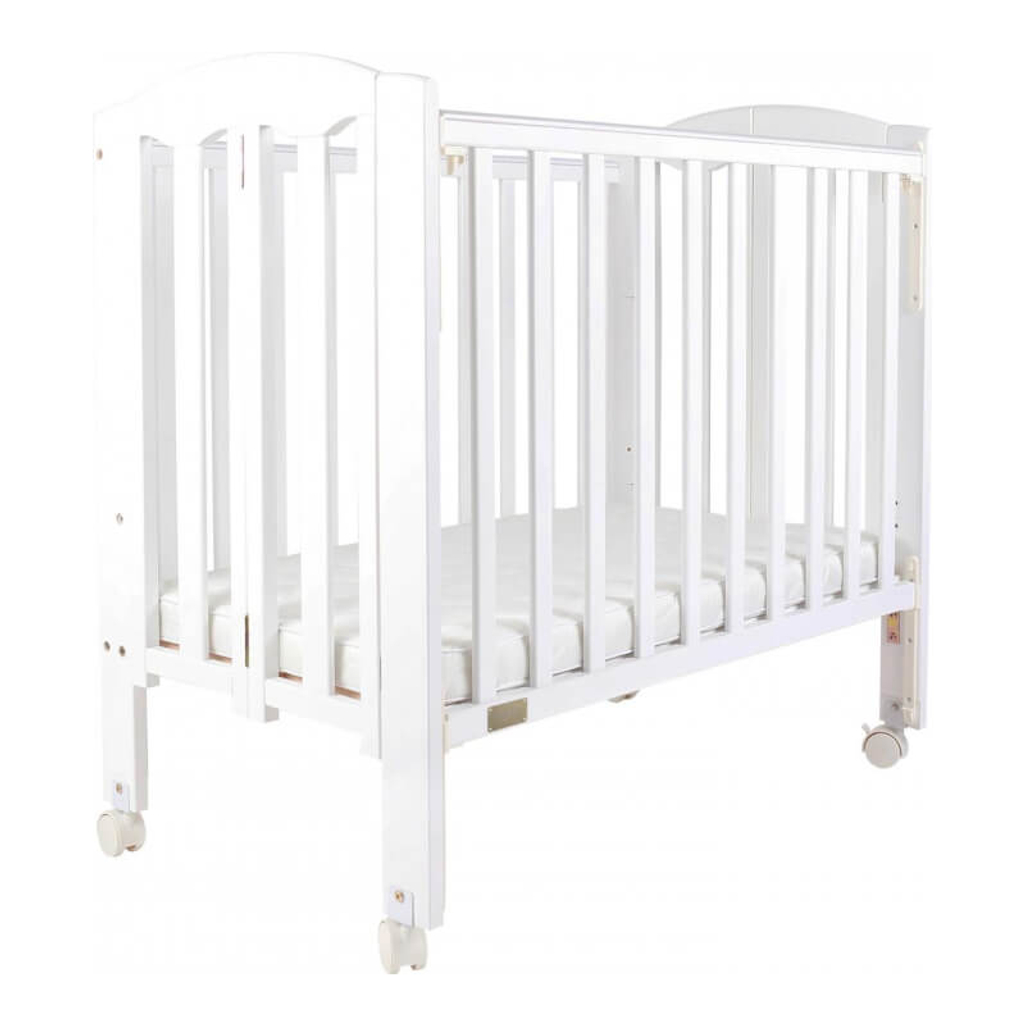 The foldable cot is made from New Zealand Pine. This is definitely a space saver for room with limited size. When not in use, simply fold it and put aside. The two mattress base heights make it a lot easier for mums to access their baby in the cot.