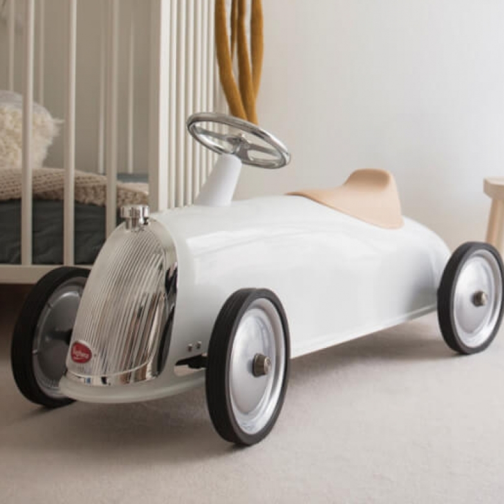 Baghera Rider White Ride On Car ‘Snow White’ is a fairytale come true. Part of Baghera’s large ride on car collection for children aged 2 years and over. The magical large white ride on features a new and fresh streamlined look. Yet still has vintage appeal. See you at the finish line.