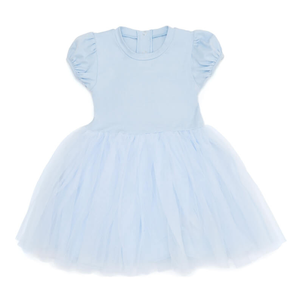 Designed with charming short puff sleeves and a full romantic tutu skirt in powder blue with the softest mesh tulle. This twirl-worthy dress is such a fun piece for your little princess and is versatile enough for both formal or casual wear.