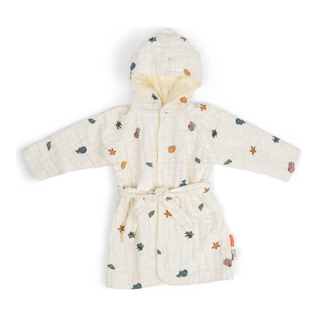 The cool bathrobe with sea creatures is a true must-have! Perfect for snuggles on slow Sunday mornings or to get your child dry and warm after bathtime. The soft bathrobe is made of multi-layered organic cotton that is lightweight and smooth on the skin.