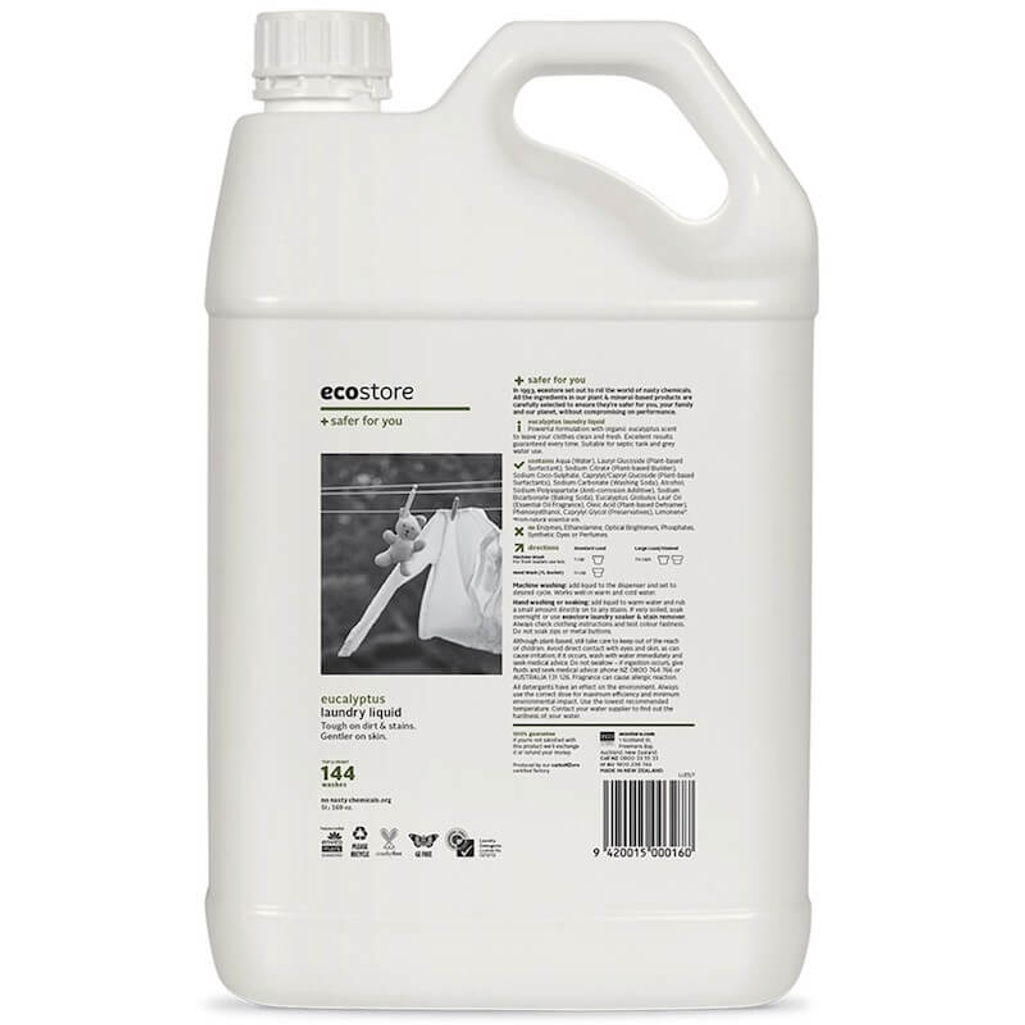 DIRECTIONS FOR USE: Standard load (1 cap) = 35ml. Large load (1½ caps) = 52.5ml. Handwash (½ cap) = 17.5ml. Machine washing: add 1 to 1½ capfuls to the detergent dispenser and set to your preferred cycle. Hand washing or soaking: add ½ a cap to warm water and rub a small amount directly onto stains. Use with ecostore Fabric Softener to keep clothes soft and gentle on skin. If very dirty, soak clothes overnight or use ecostore Laundry Soaker & Stain Remover. Always check clothing instructions and test colour fastness. Do not soak zips or metal buttons. All detergents have an effect on the environment. Always use the correct dose for maximum efficiency and minimum environmental impact.