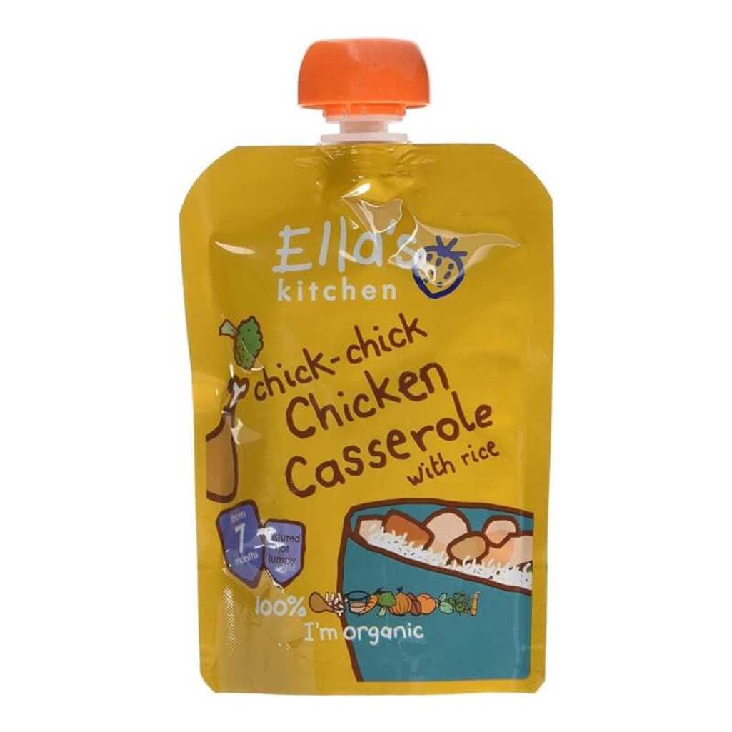 Our chick-chick chicken baby food casserole is made from 100% yummy chicken, rice + veggies. Your little one will love the tastes and textures in this delicious baby food. Chicken, carrots, broccoli, rice and other flavors come together in a happy, healthy mix and a handy resealable pouch.