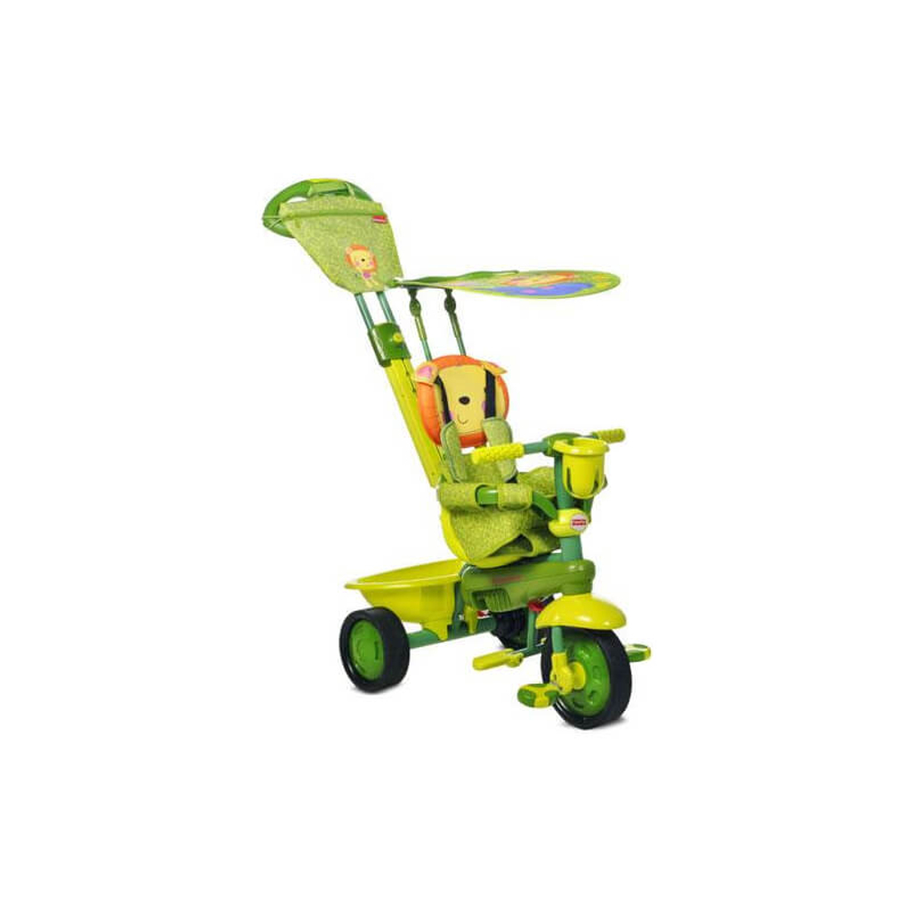 This 3-in-1 convertible trike will grow with your child from 10 months to 3 years. The Fisher-Price Smart Trike includes a telescopic adjustable parent handle, bottle holder and fully padded seat with head support.