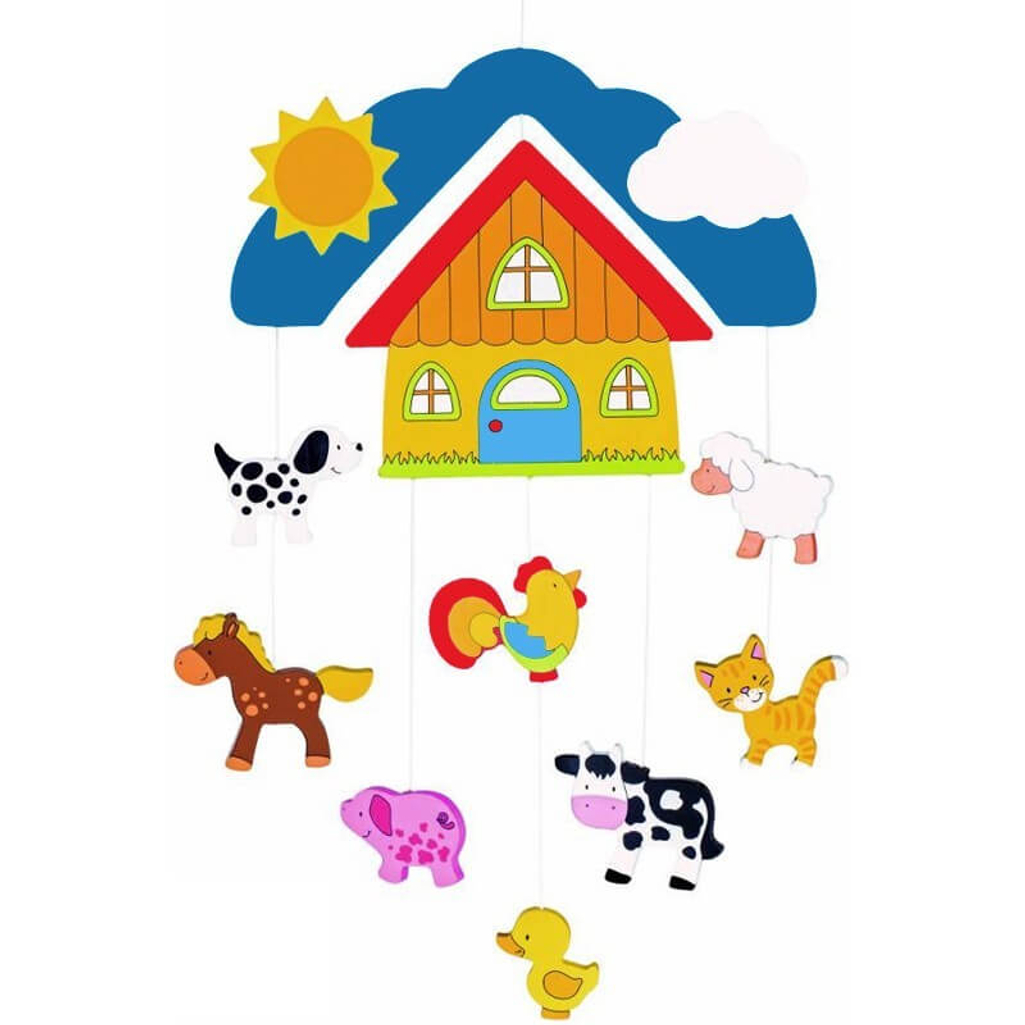 Welcome to the farm. This mobile decorates every children's room.