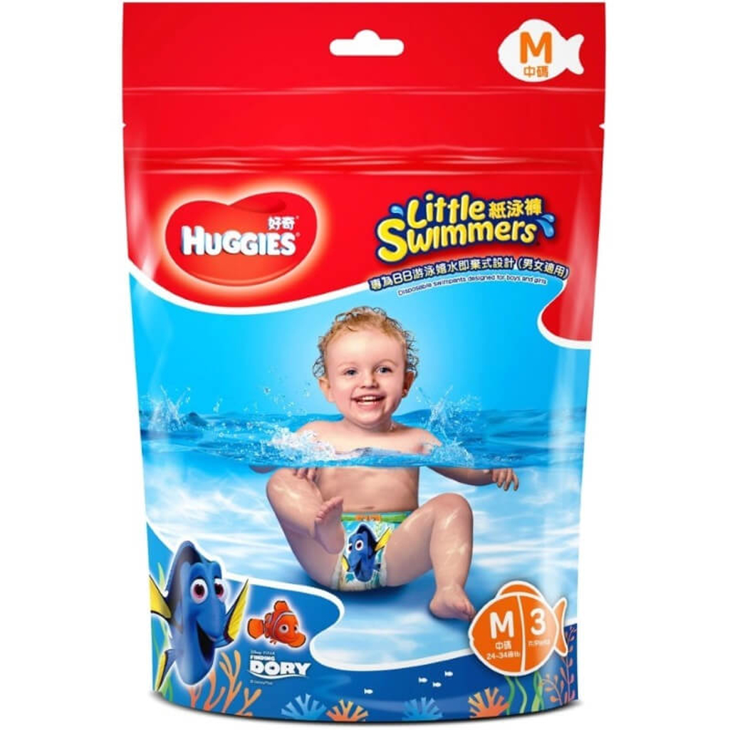 Huggies Little Swimmers keep you and your little one happy at the beach or in the pool. These leak-resistant swim diapers are made of special, absorbent material that won't swell in water. Stretchy sides and easy-open tabs mean these baby diapers fit well but are easy to change. Features fun Disney and Pixar designs.