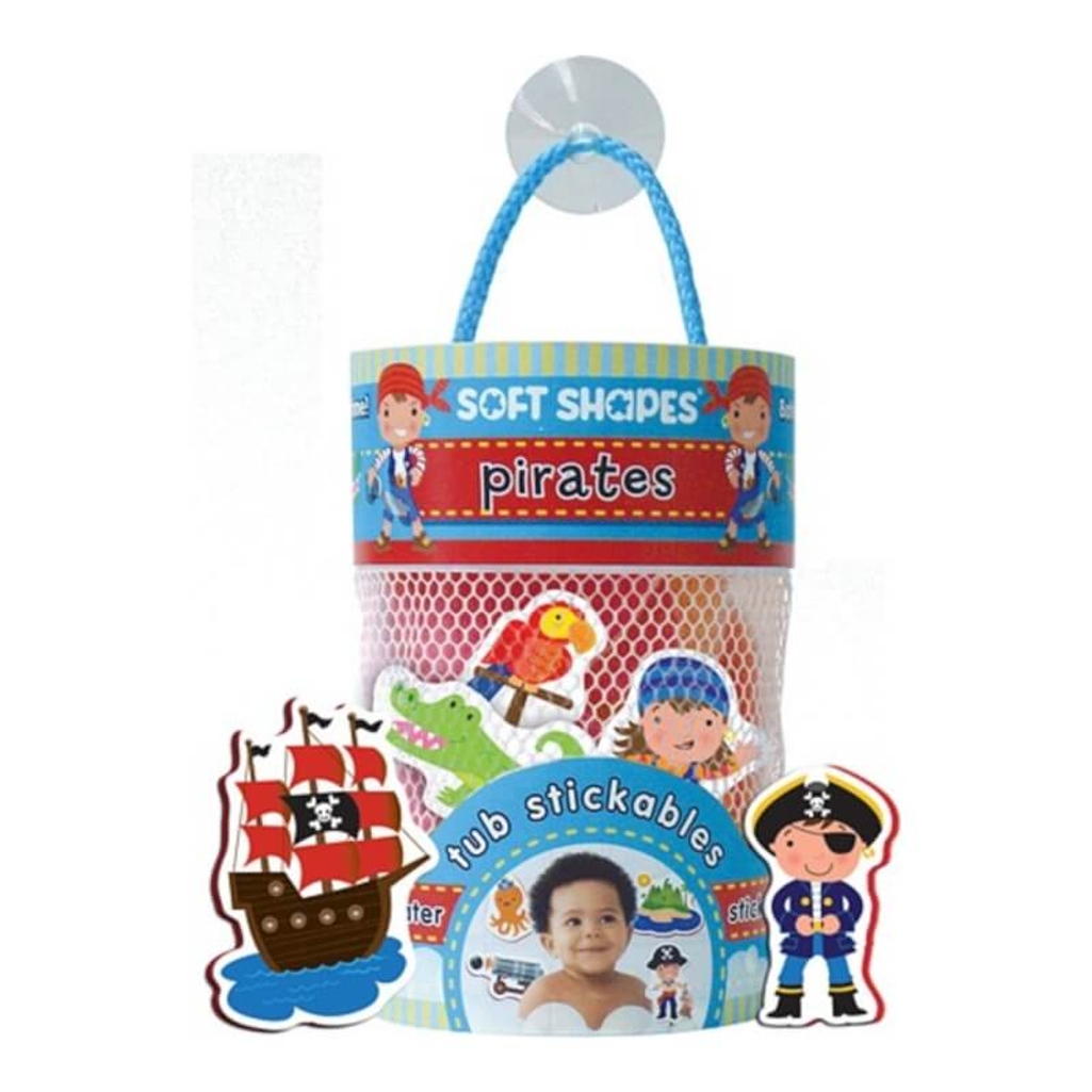 From the best-selling series that brought you the most unique and fun-filled books for the bath comes a brand new line of sticker sets! Made entirely of child-safe foam, these huggable squeezable, touchable favorites are designed to get kids learning while playing in the bath. Perfect for bath time, playtime, anytime fun and learning! These fun filled sticker sets contain 20 chunky foam bath stickers that float in water and stick to the tub, packaged in a reusable tote-along tube that suctions to the wall! Bath time becomes a swash buckling adventure with a fun filled pack of pirate play! With plenty of pirates, a ship, a treasure chest, and more, this awesome set of tub stickers is better than buried treasure!