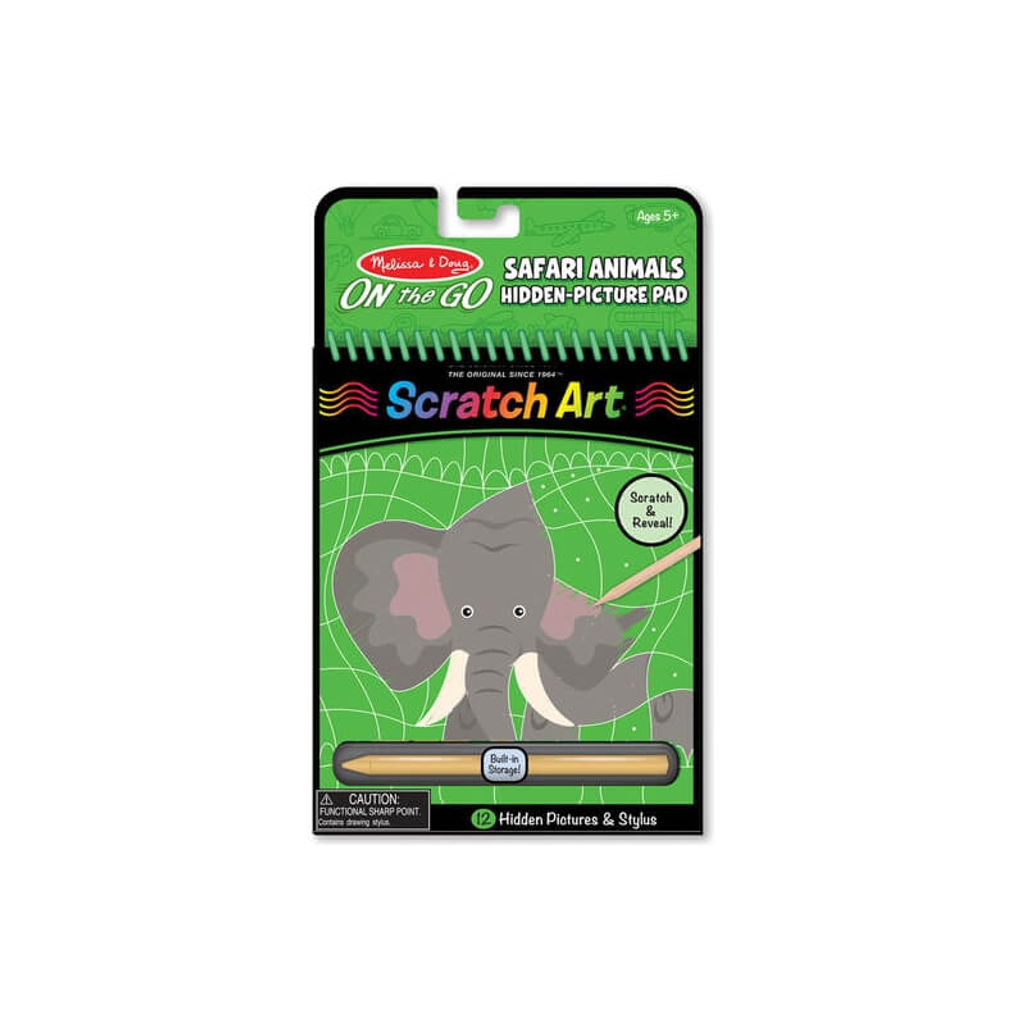 Can you guess what safari animal is hidden on each page? Read the clues--like what animal loves being in the water but cannot swim--then look for the sections with dots and scratch away the surface coating with the included wooden stylus to see if you were right! A charming illustration is concealed on each of the 12 Scratch Art pages. The spiral-bound pad features built-in stylus storage, making it a self-contained craft project that's perfect for families on the go!