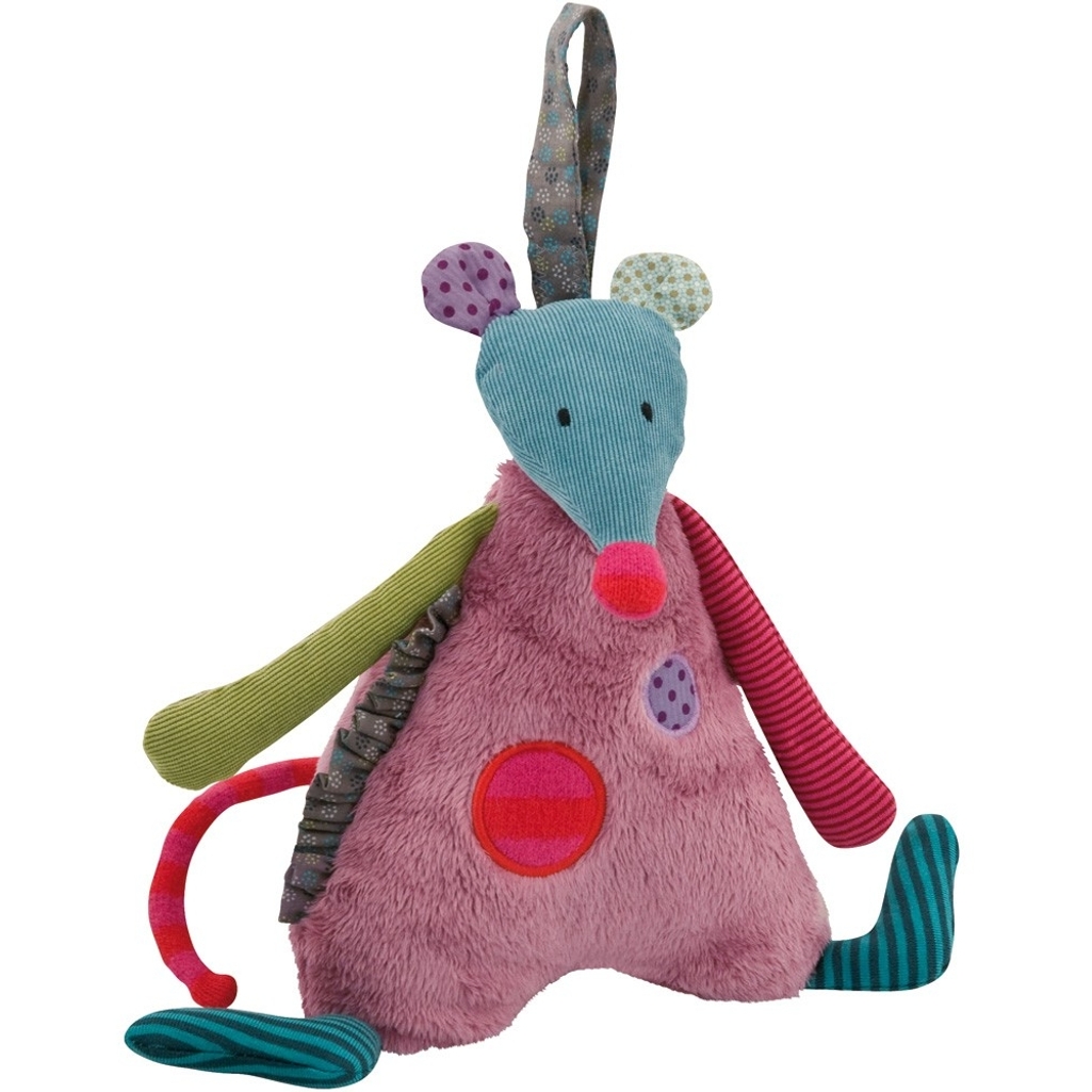 A musical mouse with nice colours and soft fur. It will help your baby develop touch and provides visual and hearing stimulation. The music is: Pop! Goes the weasel.