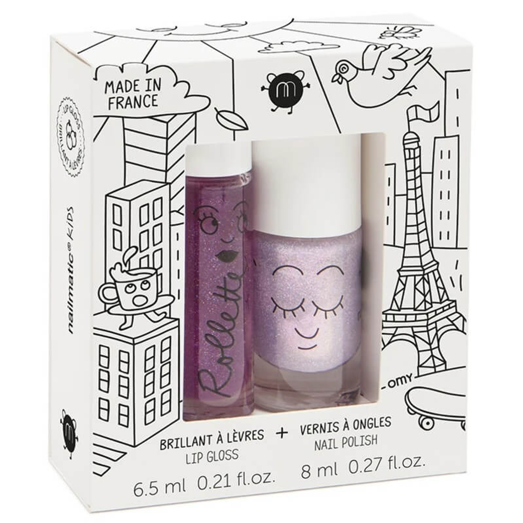 The nailmatic beauty kit for budding beauty fans: Elliot pearly pink nail polish and a blackberry Rollette lip gloss. A tasty and glam gift set for the kids!