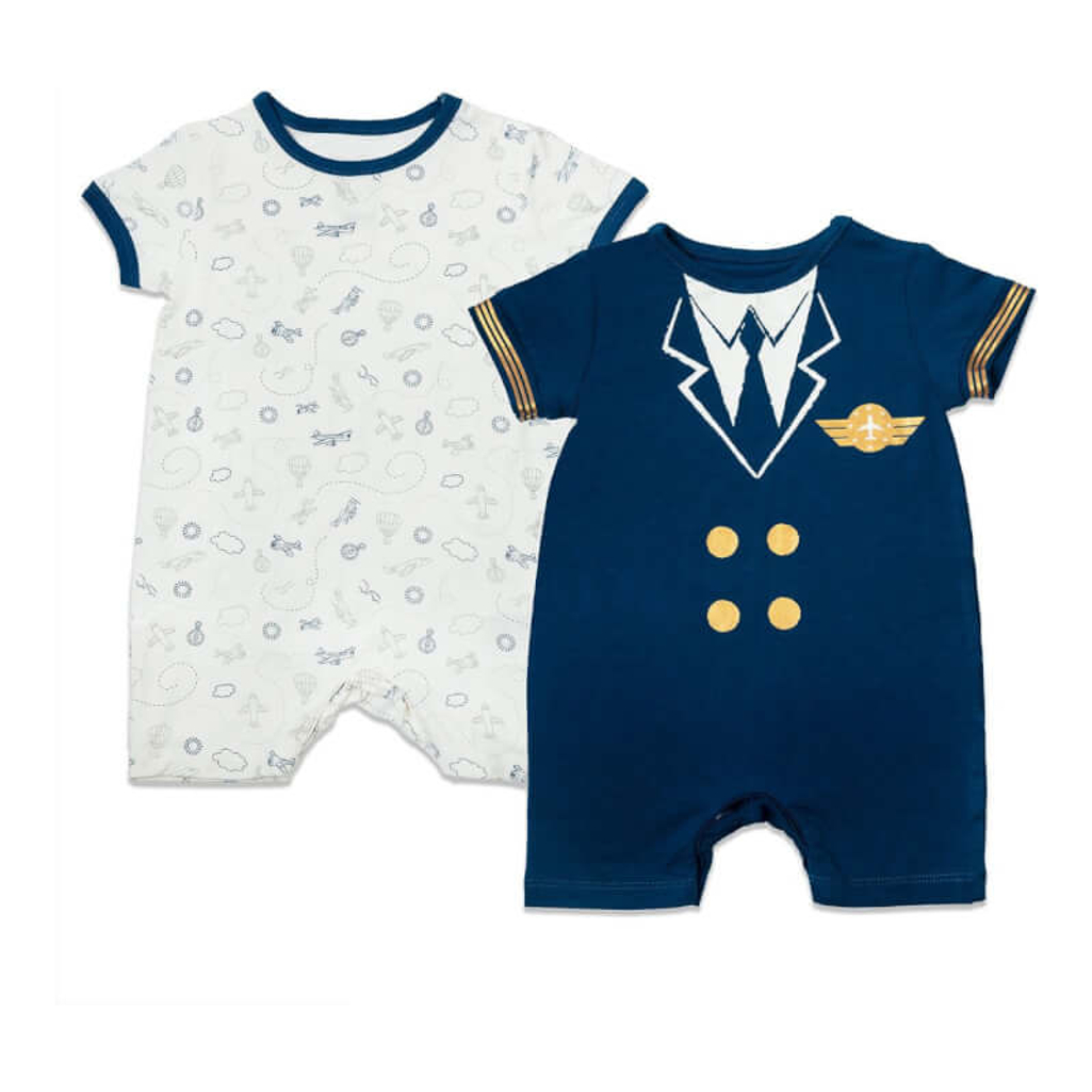 Our pilot themed rompers pack features 2 unique designs each with easy leg snaps for quick and easy changing. Our breathable and thermoregulating babywear uses a blend of 95% natural bamboo and 5% Spandex making it super soft and easy to wear. With carefully chosen materials are eco-friendly and are certified OEKO-TEX® Standard 100. Our super soft, hypoallergenic, anti-fungal & anti-bacterial rompers are perfect for your baby to get magical, safely and comfortably.