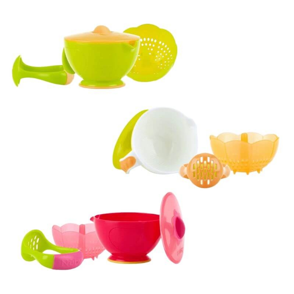 Nuby's new garden fresh steam n' mash is specially designed for making fresh baby food quickly and easily at home. Steam then mash fresh foods into the perfect puree and serve your baby directly from the bowl or store it for later. The set includes a lid and steaming basket to steam your fruits and veggies before mashing. The easy grip masher handle is designed to fit comfortably in parent's hand while the bowl's non-skid base helps keep the bowl in place.