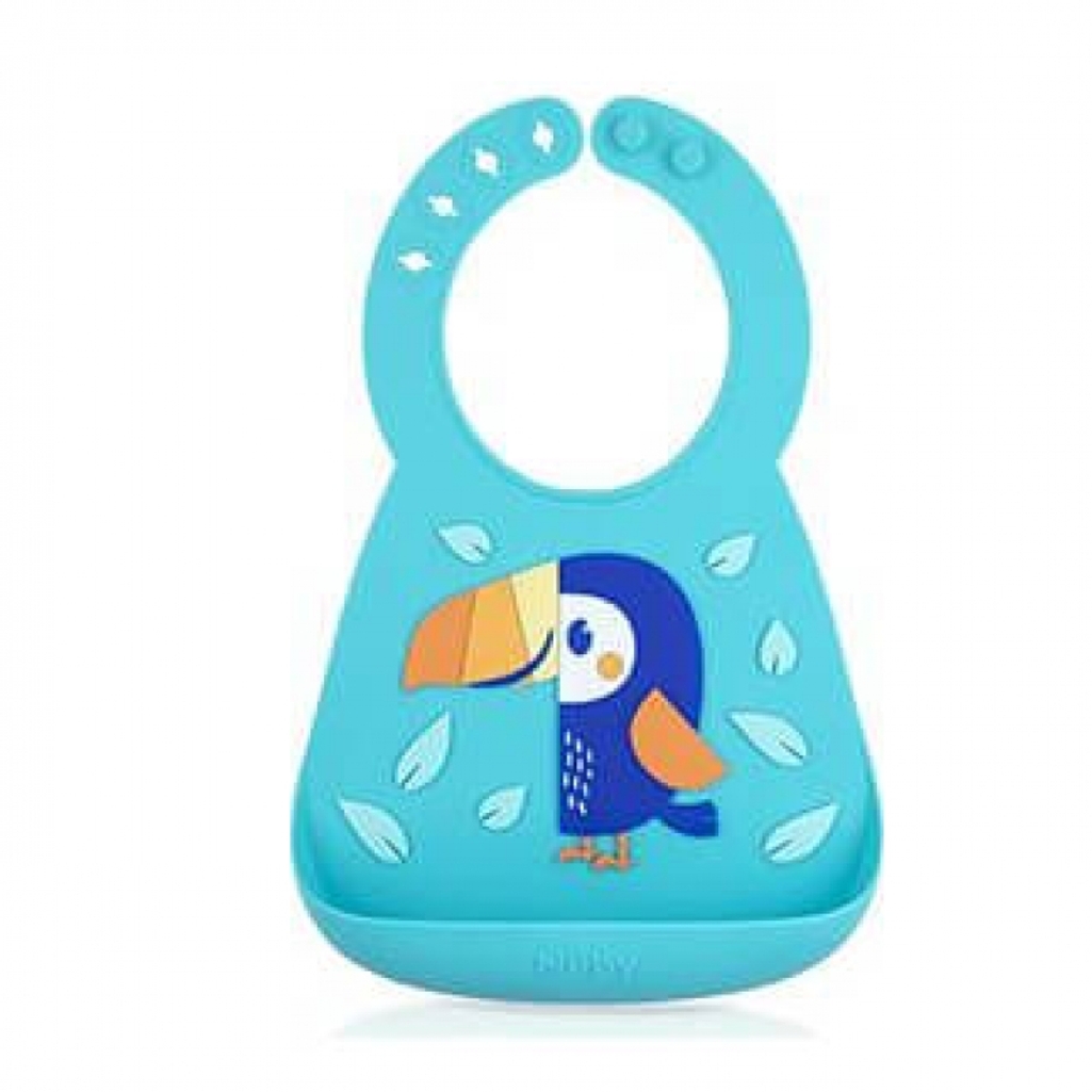 Safely enjoy messy spaghetti and crumbly cookies! Nuby’s 3D Silicone Bibs are just what you and baby need to make feeding fun while staying clean. Practical but playful, cute designs make the bibs fun for baby to wear. The bib neck is made with easy-to-adjust snaps for a better fit, and the bib bottom features a built-in scoop to catch any stray crumbs or spills. No worries if you’re away from home – simply roll the silicone bib up for easy on-the-go feeding!
