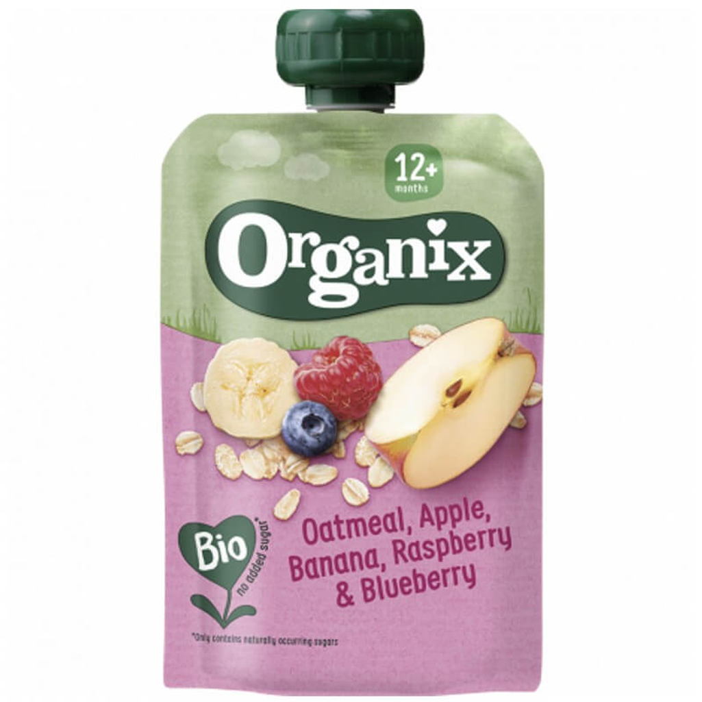 Give them the good stuff with the Organix Oatmeal Apple Banana Raspberry and Blueberry pouch. Packed with fruity goodness and delicious oats babies and toddlers age 12+ months love.
