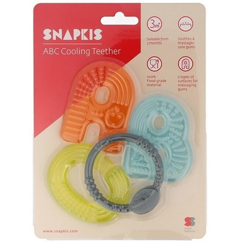 Snapkis ABC Cooling Teether is a smart little helper for your baby’s teething journey. The textured surfaces encourage biting and soothe teething discomfort. For best effect, chill in fridge for 1 hour before use. Cold teethers function like a cold compress to relieve teething irritation. Our Teether is made with 100% food-grade material and is absolutely safe for your little ones to chew on. It is designed for little hands to grip and hold easily. The alphabet shapes provide additional educational value and comes in bright colours to attract your baby’s attention.