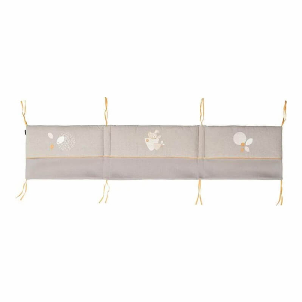 The nest bunny Lenny in is air-permeable and cushions the bars of the baby crib. It fits in beds with 60 x 120 cm and 70 x 140 cm. With the straps it can be securely attached to the bars in the head area. The 3D knitted fabric allows air to circulate and ensures a healthy climate in the baby crib. The padded nest is decorated with a cute bunny application.